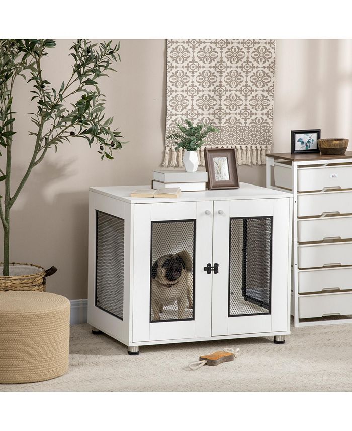 It features three doors and can be placed on either side of a sofa for convenience. PawHut Double Door Furniture-Style Dog Crate End Table, White, 32.75 x 21.7